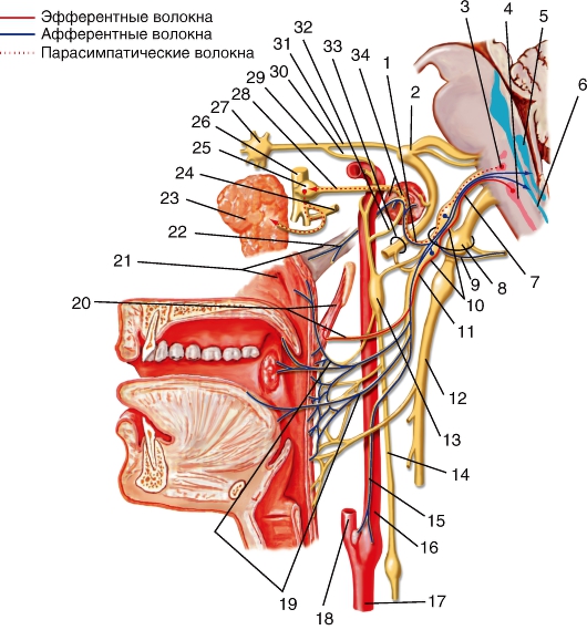 Лечение. Как и при тригеминальной невралгии, лечение проводится противоэпилептическими препаратами (карбамазепин и др.), применяются также нестероидные противовоспалительные средства и антиагреганты, витамины группы В, РР, местноанестезирующие средства, физиотерапия. Иногда болевой пароксизм удается купировать, смазывая раствором местного анестетика миндалины, зев, корень языка.