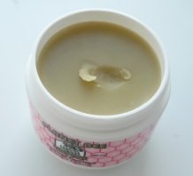 Можно приготовить 5-, 10-, 15-, 20-, 30- или 40%-ньй препарат. Взять соответственно 5, 10, 15, 20, 30 или 40 г измельченного прополиса, положить в эмалированную чашку и расплавить на кипящей водяной бане до вязкой консистенции. Затем добавить соответственно 95, 90, 85, 80, 70 или 60 г вазелина, вазелина с ланолином, несоленого сливочного масла или другой подобной жировой основы (чтобы общий вес ее и прополиса составил 100 г) и выдержать еще на водяной бане 10-30 минут при температуре не выше 80 °С, постоянно помешивания (образуется однородная масса). Процедить в горячем виде через сложенную в 2 слоя марлю, оставить до полного охлаждения, затем расфасовать.