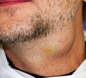 В поздней стадии заболевания больные жалуются на постоянную припухлость в области слюнной железы, неприятный привкус во рту. В анамнезе заболевания - частые обострения в течение нескольких лет.