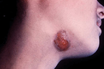 Длительность инкубационного периода не известна. Он может колебаться в широких пределах и доходить до нескольких лет. Возникает чаще на коже в области челюсти и шеи, а также в органах брюшной полости и легких.