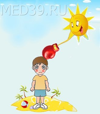 Первая помощь при солнечном удареСолнечный удар - заболевание, обусловленное интенсивным и длительным воздействием прямых солнечных лучей на область головы. Чаще всего возникает при работе или длительных играх с непокрытой головой на открытой местности, при пребывании на пляже.