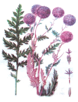 Мордовник обыкновенный (мордовник шароголовый) – это многолетнее травянистое растение высотой до 70 см, с прямостоячим, беловойлочным стеблем и перисторассеченными листьями. Головчатые соцветия цветков расположены по одному на концах ветвей. Плод-веретеновидная семянка, покрытая прижатыми волосками. Цветет в июле-августе. Другие названия: осот черный, осока черная. Произрастает на каменистых и щебенистых холмах и невысоких горах, иногда на лугах в степных зонах Европейской части России, в Сибири и Средней Азии. Для медицинских целей осенью заготавливают плоды мордовника.