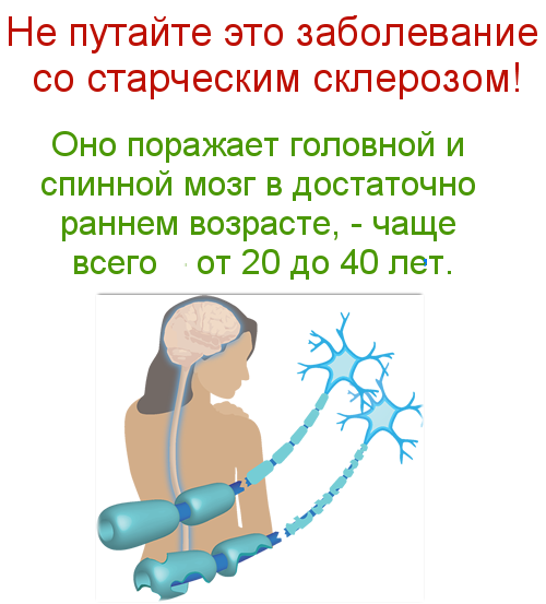 Заболевание, в отличие от всем известного склероза, поражает головной и спинной мозг в достаточно раннем возрасте, (чаще всего – от 20 до 40 лет).